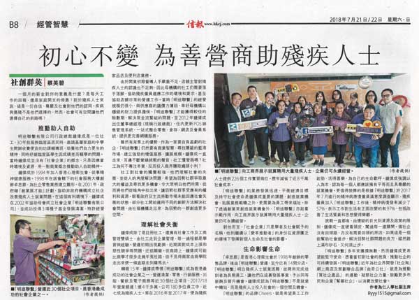 「信報」理財投資版中的社創群英專欄報導了「明途聯繫」行政總裁鍾偉成先生創辦公司的背景和經歷,並且展示「明途聯繫」透過發展不同的社企項目,延續為殘疾人士創造就業機會的初心。