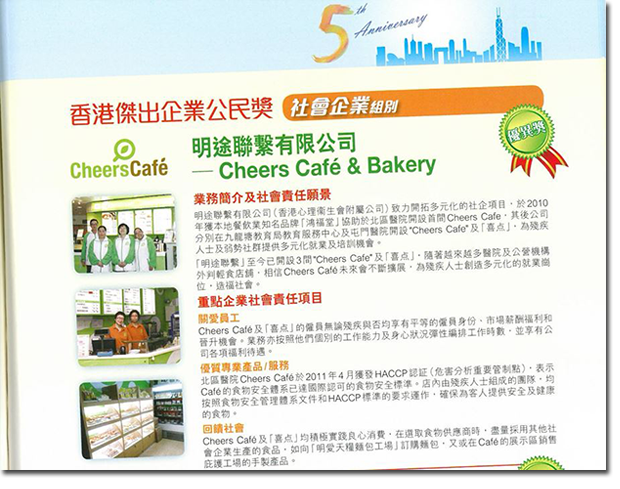 「明途聯繫」對履行企業社會責任不遺餘力,旗下的「復康速遞」直銷業務更於本年度榮獲由香港生產力促進局及公民教育委員會主辦「第五屆香港企業公民計劃」設立的「香港企業公民嘉許計劃」社會企業組中的金獎。另外,「Cheers Café」及「Cheers Bakery」 亦獲社會企業組別優異獎嘉許。頒獎典禮假香港會議展覽中心舉行。董事總經理鍾偉成先生率領公司代表於2014年12月17日出席頒獎禮及接受獎狀。