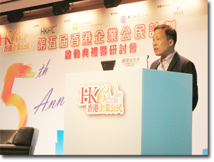 明途聯繫董事總經理鍾偉成於生產力局聯同公民教育委員會主辦的「第五屆香港企業公民計劃」啟動典禮暨研討會中擔任分享嘉賓,與在場人士分享明途聯繫過往履行企業社會責任的經驗。