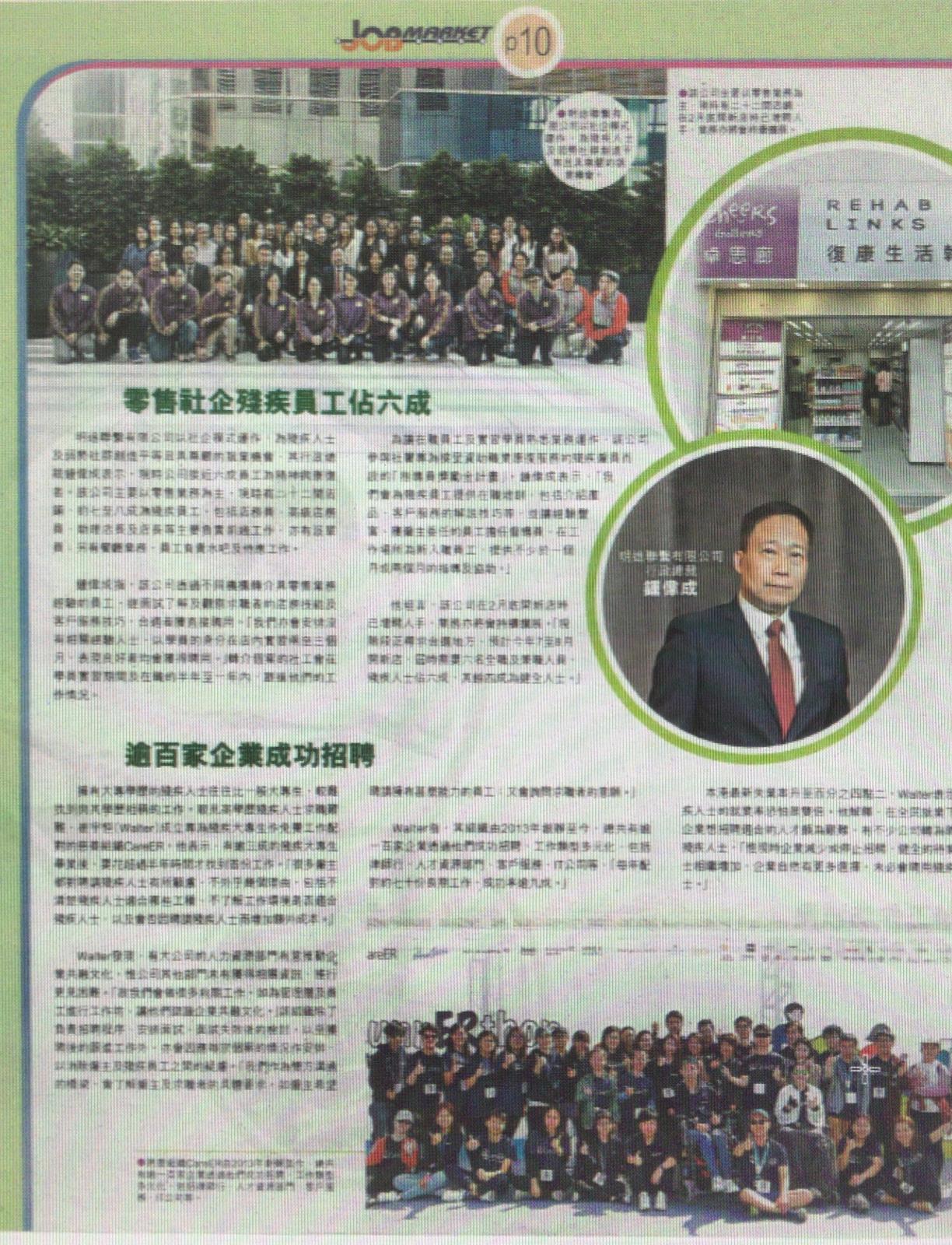 「明途聯繫」行政總裁鍾偉成先生日前接受JobMarket訪問,在本港殘疾人士就業專題上,介紹公司的經營理念、運作模式、以及如何透過業務的持續發展,為殘疾人士及弱勢社群創造平等及具尊嚴的就業機會。